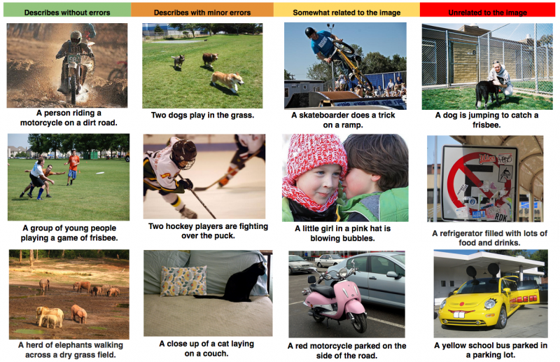 오류 정도에 따라 분류된 구글 이미지 묘사 소프트웨어의 결과물 (출처:Google Research Blog)