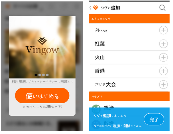 우선 일본에서 인기를 끌고 있는 뉴스 큐레이션 앱 두 가지를 소개한다. 첫째로 Vingow.
