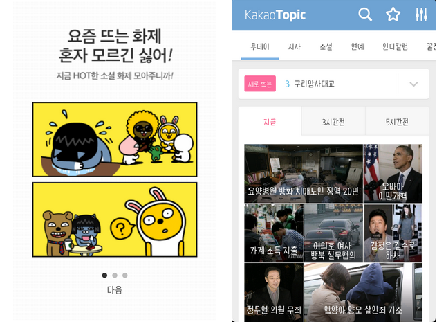 카카오 토픽 은 뉴스, 매거진, SNS등 다양한 분야별 관심사를 제공한다.