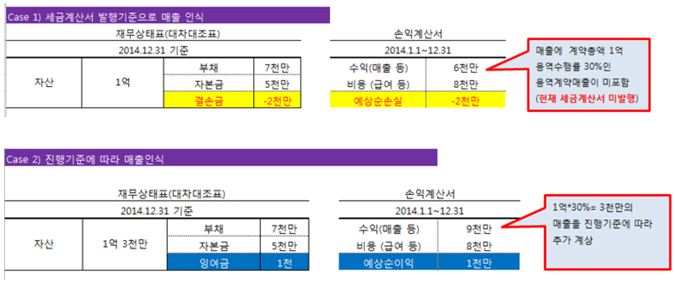 특히, 금융권/신보/기보 대출이 있는 법인인 경우 2014년 재무제표상 손실이 계상되는 경우