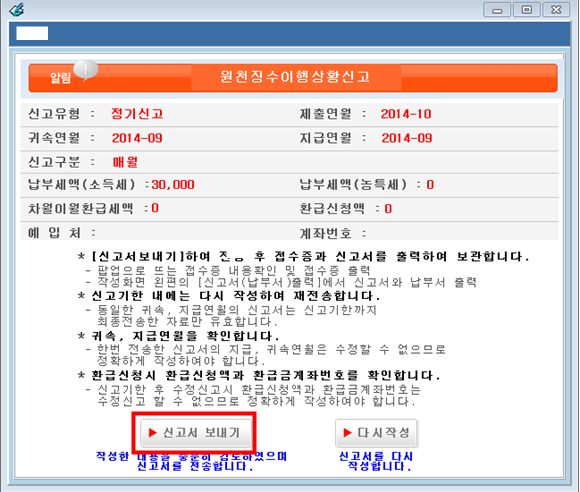 (6) 모든 입력사항 입력 후 [신고서 보내기] 클릭하시면 끝~