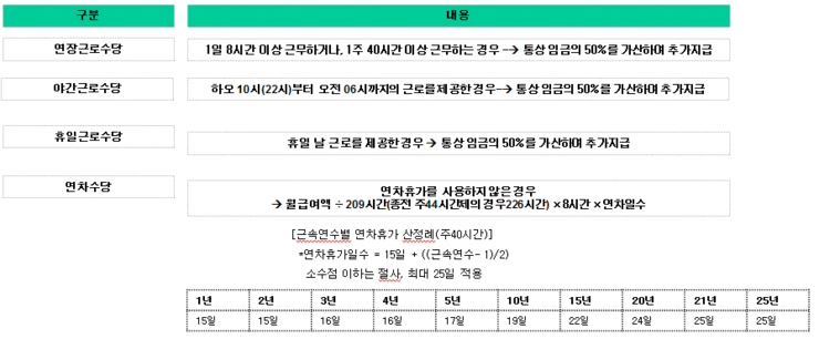 (현실적으로 지급하기도, 지급받기도 어려우나 근로기준법상으론 엄연히 법정수당이 있습니다)