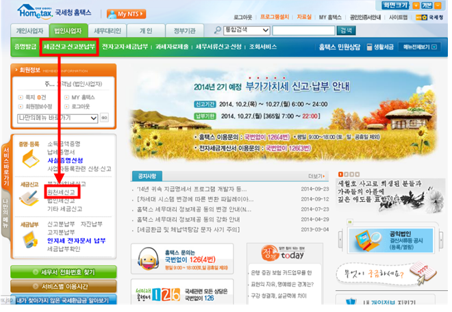 (1) 홈택스에 접속하여 회원가입 후 공인인증서 로그인합니다.