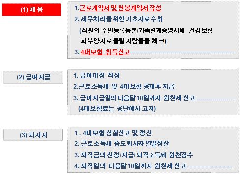 채용일 이후 14일 이내 4대 보험 취득신고를 하셔야 합니다.