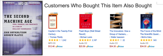 내가 책A를 구매한 후에 어떤 책을 샀는지, 내가 가방C를 구경한 후에 무엇을 구경했는지는 아마존의 매개 네트워크를 만드는 밀알이다. 이런 데이터들이 모여 제품으로 매개된 고객간의 관계, 고객의 행위로 매개된 제품간의 관계가 만들어진다. 여러분이 번들로 구매한 책A와 책B는 명시적으로 연결되고 책A의 다음 구매자가 책B를 살 확률을 높여준다. 여기서 여러분 자신은 제품과 구매자의 관계, 제품과 제품의 관계를 만드는 매개자이며, 이렇게 구축된 네트워크가 아마존의 추천 네트워크다.