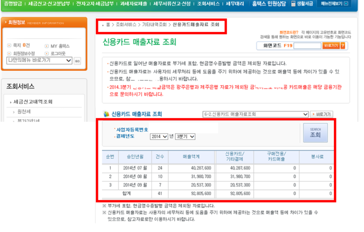 : 카드 매출이 있는 경우, 카드 가맹점을 통해 석달치 매출 집계, 건수 등을 확인하시어 카드 매출을 프로그램에 입력하셔야 합니다.