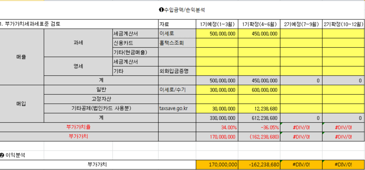 매출 .매입자료 정리.입력 후 신고전에 반드시 부가가치율 체크하여 이상 징후를 파악하셔야 합니다.