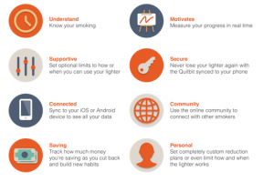 2014년에 등장한 ‘인터넷이 되는 사물’ 중에서 개인적으로 가장 기억에 남는 것은 큇빗(Quitbit)이라는 스마트 라이터(http://goo.gl/vKdUj7)였다. 킥스타터에서 목표했던 5만불의 펀딩에 성공하여 2015년 초 양산에 돌입한다. 단순히 스마트폰과 블루투스로 연결되어, 라이터를 분실하는 것을 방지하는 것을 뛰어넘어, 1) 오늘 담배를 얼마나 폈는지 2) 마지막으로 핀 시간은 언제인지 3) 흡연장소가 어디인지 등의 아주 단순한 정보를 기록한다. 사물인터넷 제품과 서비스를 만드는 과정에서 ‘사물’로부터 얻을 수 있는 정보는 일반수요자들이 공감할 수 있는 것이어야 한다. 베슬의 경우, 컵에 담기는 음료의 성분을 측정하는 것이 당연하고, 큇빗의 경우, 흡연에 관한 정보를 수집하는 것이 당연하다. 반대로, 인터넷이 연결된 쓰레기통에서 쓰레기와 관련된 정보수집이 아닌, 공기품질이나 미세먼지 농도에 관한 정보를 수집하려 한다면, 일반수요자들의 공감을 얻는 서비스와는 점점 거리가 멀어지게 될 것이다. 채집하고자 하는 ‘정보항목’은 그 사물의 본질을 벗어나지 않는 것이어야 하며, 그 것을 기초로 서비스 구성을 시작하는 것이 사물인터넷 서비스 아이디어 구상의 첫걸음이다.