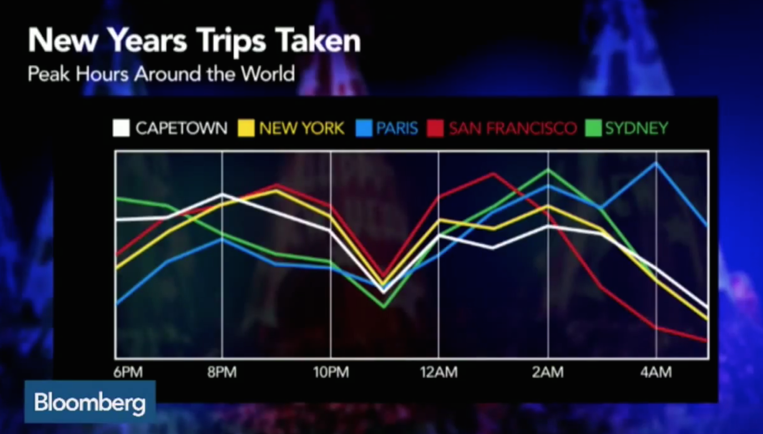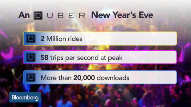 우버는 2014년 12월31일밤, 즉 New year’s eve에 전세계에서 2백만회의 승차서비스를 제공했다고 밝혔다. 이것은 피크타임에 초당 58회씩 승객을 실어나른 셈이라고 한다. 이날밤 2만번이 넘는 새 우버앱 다운로드가 이뤄졌다.