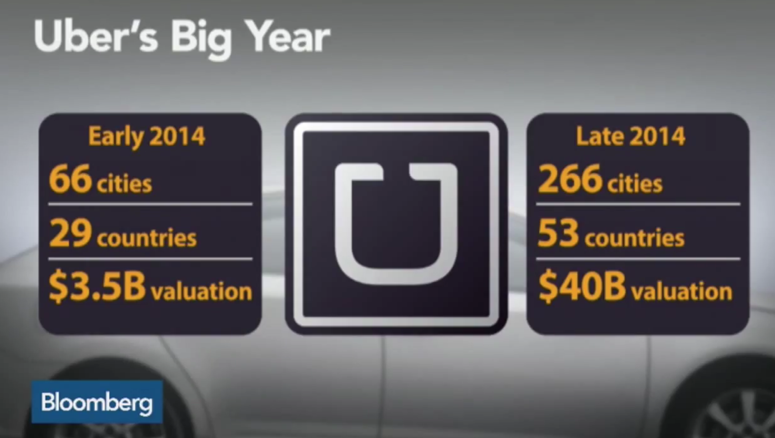 오늘 블룸버그 뉴스에서 본 슬라이드 몇개. 전세계에서 충돌과 논란을 불러일으키고 있는 우버라는 회사에 왜 그렇게 계속 거액의 투자가 몰리고 있는지 조금이나마 이해할 수 있다. (우버는 12월초 44조원의 기업가치로 약 1조3천억원의 투자를 유치했으며 12월중순에는 중국의 바이두로부터 6천6백억원의 투자를 유치했다고 발표했다.)