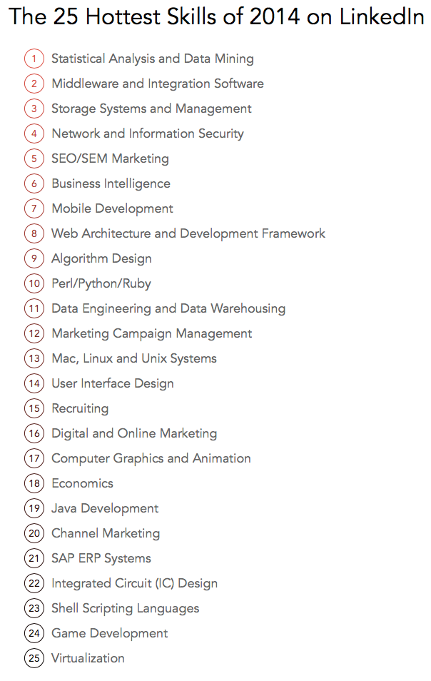 The 25 Hottest Skills That Got People Hired in 2014 – 링크드인의 3억명 멤버들 프로필을 조사한 결과.