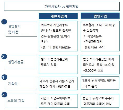 창업을 준비하시는 분이라면 개인사업자로 시작할지, 법인설립을 할지 고민하시는 경우가 많습니다.