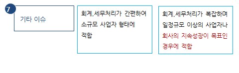 단, 이 경우에도 법인전환시 기존 개인사업에서 발생한 결손(비용)이 법인으로 승계되지 않는 등의 단점이 있습니다. ( 전환전 개인사업에서 발생한 결손은 전환후 법인 대표의 개인 근로소득에선 공제가능) 또는 서비스업 기준 연매출이 7,500만원미만이라면 개인사업자 그 이상이면 법인사업자로 추천드리기도 하지만, 이것도 어디까지나 세무적인 판단일 뿐입니다. 결국 본인이 처한 상황에 맞게 최대한 유리한 측면에서 판단할 문제이니 칼로 무 자르듯 결정할 문제는 아니라는 점 다시 강조드립니다.