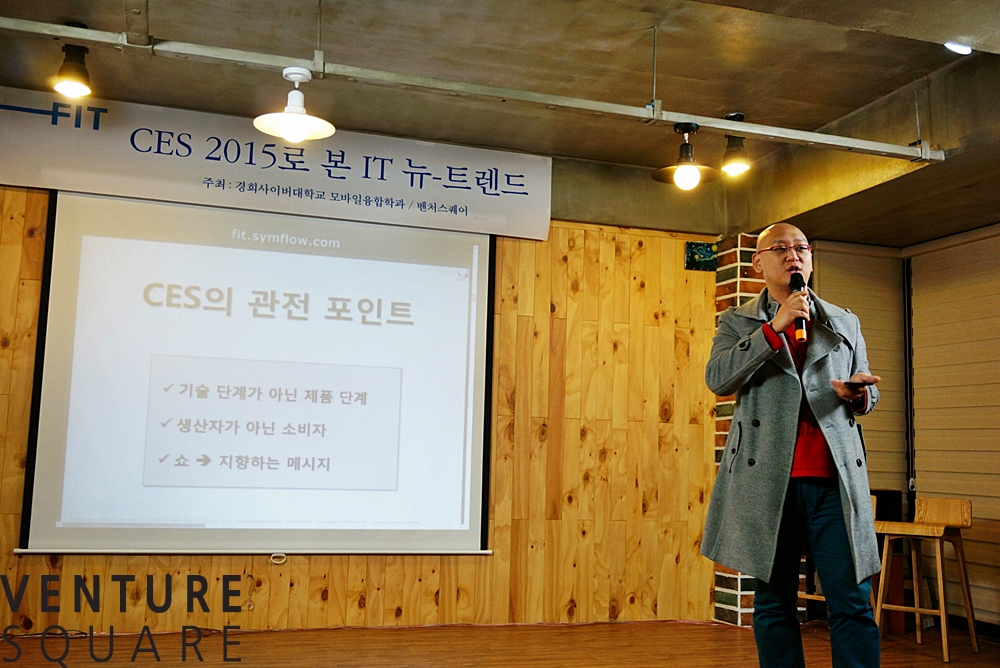 토크쇼는 특강과 패널 토의 및 질의응답으로 구성됐다. ‘모바일, 융합, 데이터 관점에서 본 CES 2015’의 주제로 강의를 진행한 고영혁 교수는 ‘기술단계가 아닌 제품단계’, ‘생산자가 아닌 소비자’, 마지막으로 ‘쇼에서 지향하는 메시지’라는 세 가지 관전포인트를 중심으로 이야기를 풀어냈다.
