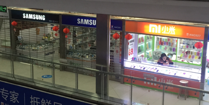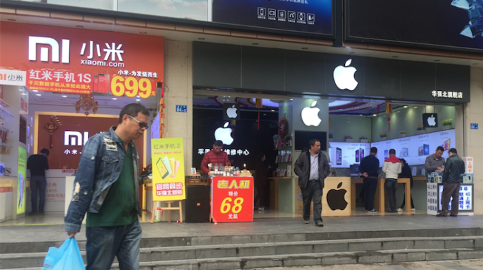 여기서 조금만 걸어다녀보면 애플과 샤오미사이에 치열한 전쟁이 벌어지고 있다는 것을 알 수 있다.