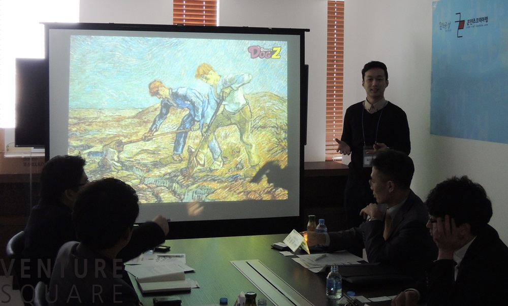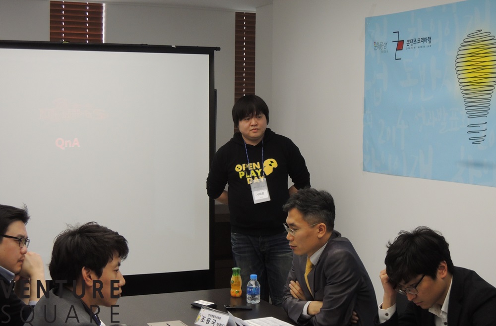 어느덧 오후 2시 30분. 프로젝트별로 멘티가 자신의 창작기획물을 현업 관계자와 전문가에게 발표하고 현장 코칭까지 진행하는 ‘프로젝트 피칭’이 시작되었다. 지난 9개월 동안 벤처스퀘어는 게임 기획 및 개발, 디자인 분야를 맡아 게임분야의 현업 전문가(멘토)와 교육생을 매칭하여, 장기간의 훈련과 견습창작의 장을 제공했었다. 그리고 마침내 노력의 결실을 거둘 시간이 다가왔다.