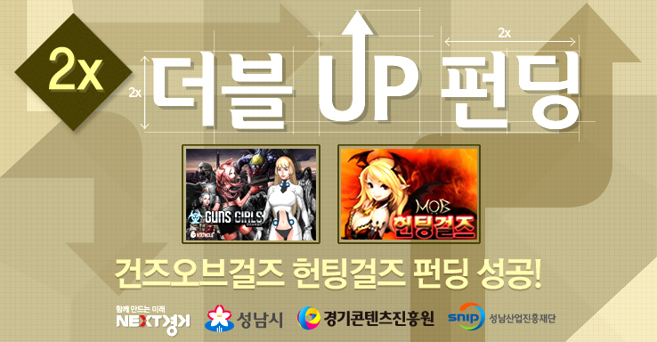약 20일간 진행된 1차 더블업펀딩 4개 프로젝트 중 2개의 프로젝트만이 더블업 펀딩에 성공했다. 성공 프로젝트는 쏘그웨어의 ‘헌팅걸즈’와 볼트홀의 ‘건즈오브걸즈’이다.