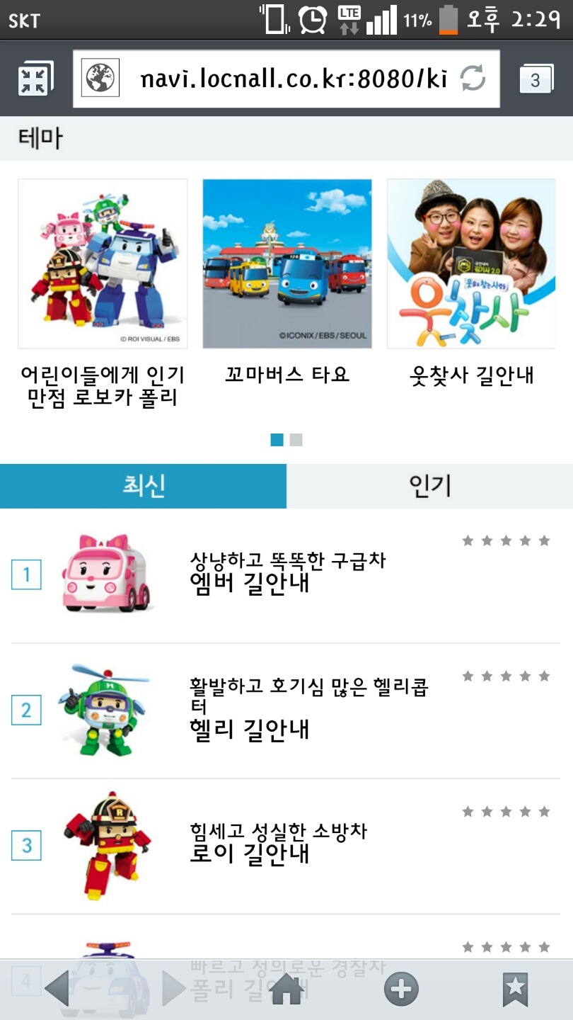 ‘록앤올’의 스마트폰 네비게이션 ‘김기사’에 인기 애니메이션 ‘로보카 폴리’ 캐릭터의 음성을 활용한 길안내 음성 서비스를 시작한다.