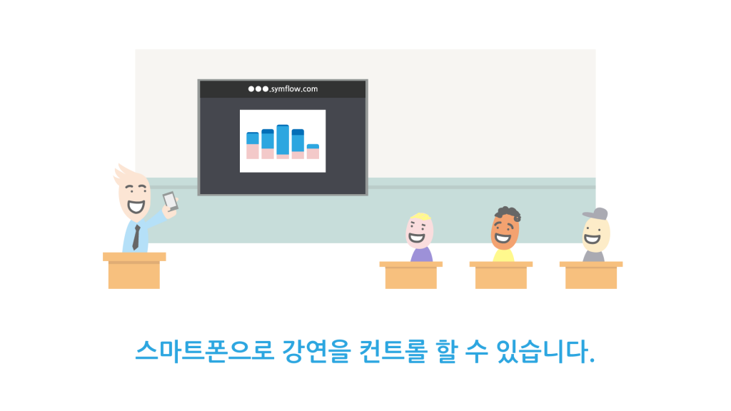 파워포인트는 물론, PDF 파일을 업로드하여 발표자료를 표시하는 기능도 물론 포함되어 있다. 프로젝터가 연결된 PC에서 심플로우 페이지에 접속하면, 자료나 청중이 올린 질문 내용을 스마트폰으로 컨트롤 할 수 있고, 유투브 또는 Vimeo의 동영상 링크 연결 만으로 해당 영상을 자동으로 플레이 해주는 강력한 프레젠테이션 모드가 자랑이다.