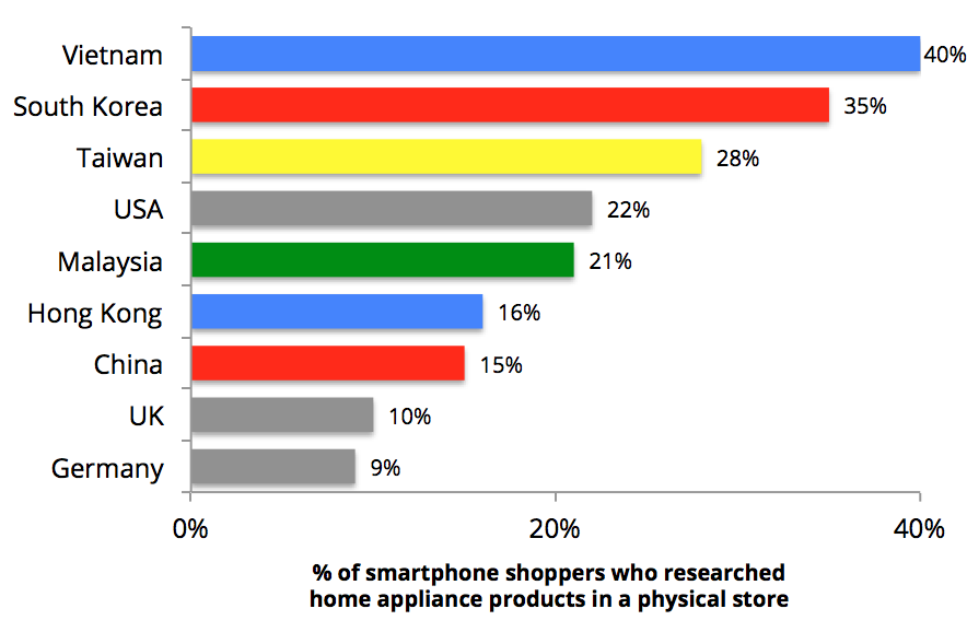 아시아는 이미`모바일 퍼스트’에서 ‘모바일 온리’로 바뀌고 있다. 말레이시아에서는 응답자 중 35%는 스마트폰이 유일한 인터넷 기기라고 답했고 베트남 응답자는 24%가 동일하게 답했다. 개발도상국에만 해당하는 수치가 아니다. 싱가폴 응답자는 16%가, 한국 응답자는 14%가, 홍콩 응답자는 14%가 그렇다고 대답하며 두자리수의 응답률을 보였다.