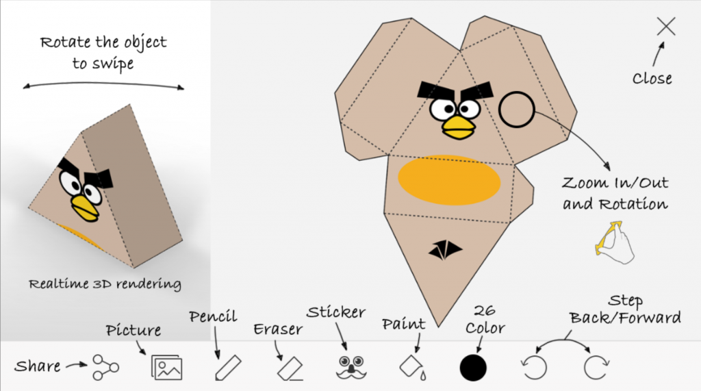 아이는 폴디가 제공하는 전개도 위에 그림을 그리거나 사진, 스티커를 붙여 자신만의 페이퍼 토이(종이 완구)를 디자인한 후 직접 프린트하여 페이퍼 토이를 만들어볼 수 있다. 아이는 실시간 3D 렌더링 기술을 통해 2차원 전개도의 한 지점이 3차원 결과물에서는 어느 지점에 놓이는지 쉽게 알 수 있다. 그리고 직접 손으로 종이 접기를 하기 때문에 두뇌개발과 집중력 향상에 도움이 된다.