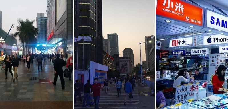 드디어 모든 미팅을 끝내고 오후에 화창베이 도착했다. 화창베이는 로호에서 15분 정도 떨어져 있다. 우리나라의 용산 전자상가와 뉴욕의 타임스퀘어가 뒤섞인 느낌이다. 사람도 많고, 시끄럽고, 공기도 좋지 않다. 거대한 전자상가들이 분야 별로 단지를 이루고 있으며, 대부분의 중국 최신 제품들이 가장 먼저 선보여지는 시장이라고 한다. 이곳의 짝퉁 전자제품을 훑어보는 것만으로도 최신 트렌드는 파악할 수 있겠다는 생각이 든다. 잊지 말아야 할 것은 정품과 짝퉁이 마구 뒤섞여있으므로, 물건을 살 때 꼼꼼하게 살펴봐야 한다.