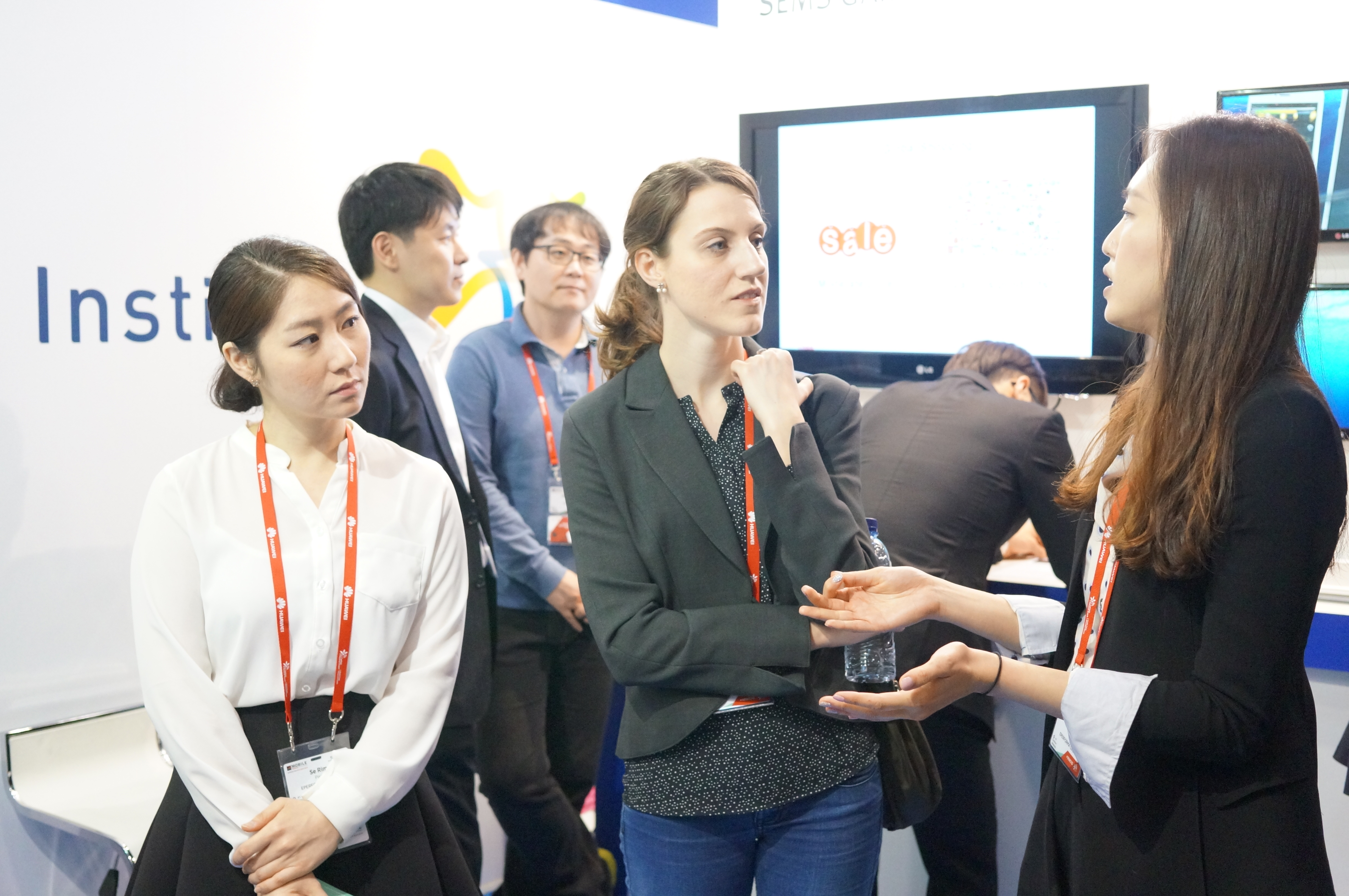 스마트벤처창업학교 우수팀이 모인 전시장에도 나흘 내내 많은 관람객 및 해외 바이어들이 함께 했다. 사실 행사 전날만 해도 부스가 생각보다 외진 곳에 자리 잡고 있었던 데다 그리 큰 규모로 차려진 것도 아니어서 참가팀들 모두 그리 큰 기대를 걸지 말자는 분위기가 대부분이었는데, 대부분 팀들이 상상 이상의 관심을 받아 무척이나 고무된 모습이었다.