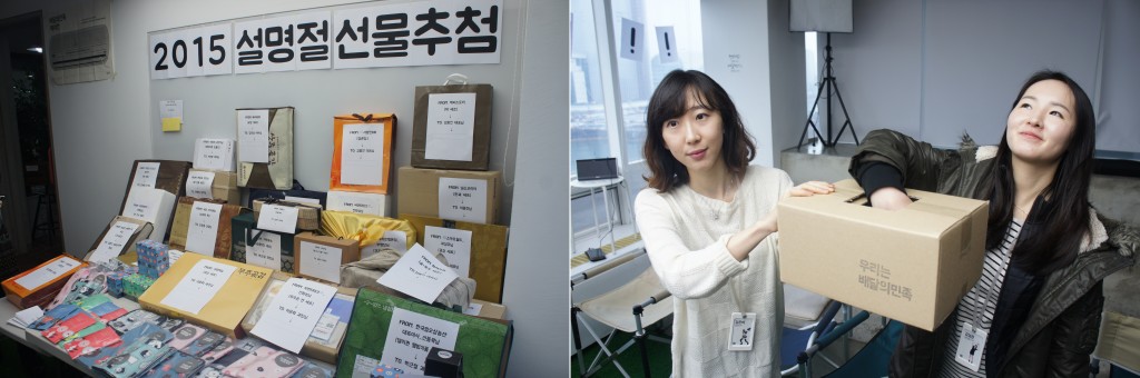 설날 선물은 추첨을 통해 전 구성원에게 공평하게 분배된다. 우아한 형제들 특유의 평등한 문화가 돋보인다