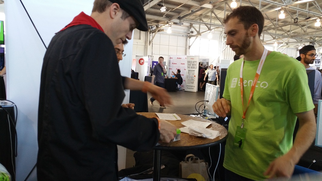 특이한 스타트업 중 하나 -앱을 통하여 주문을 하면 즉석에서 5분 내에 벤토박스를 만들어서 서빙하는데 행사 부스 중에서 가장 많은 판매를 했고 많은 투자가들의 관심을 받은 샌프란 시스코에 소재한 Bento 부스. 오후에 가니 이미 품절이 될 정도로 인기가 많았다. 아시안 퓨전 음식인데 파운더 중에 아시안이 없는 것이 특이하였다.