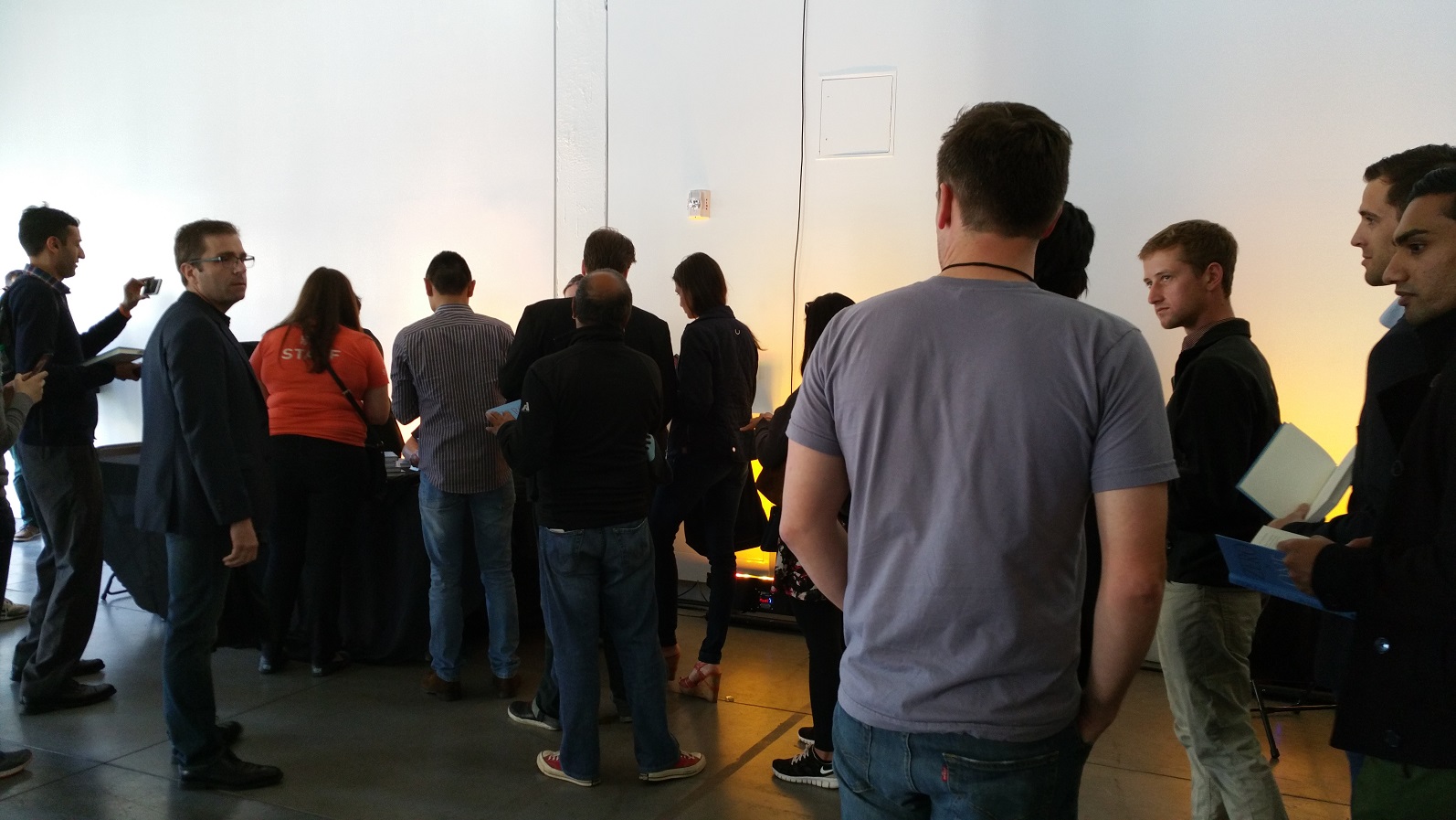 이전에 LAUNCH FESTIVAL을 통하여 등용된 유명 스타트업은 100억불 이상의 벨류에이션을 받고 있는 Dropbox, Intuit에 1억 7천불에 매각된 Mint, Microsoft에 1억 불 이상에 팔린 Yammer 등 명실 상부한 스타트업의 등용문이라 할 수 있다. 참가 연사들도 화려한데 올해는 Zero to One으로 유명한 Peter Thiel, LinkedIn CEO Jeff Weiner, Sales Force CEO Mark Benioff 등이 연사로 참가하여 스타트업들에게 큰 영감을 주었다. 특히 Peter Thiel은 세션 후에 입구에서 책 사인회를 하였는데 아래 보는 것 처럼 사인을 받으려는 사람들로 붐볐다.