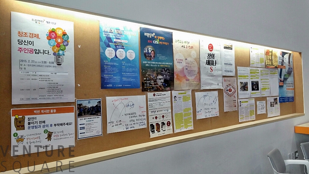 다른 기관들과 비교했을 때 드림엔터는 정부가 운영한다는 큰 차이가 있어요. 미래창조과학부에서 100% 지원을 받아서 저희가 위탁 운영하고 있는 거죠. 그래서 매주 미래창조과학부에 보고를 해야 해요. 정식 명칭은 창조경제 교류공간 드림엔터, 개관한 지는 며칠 전에 딱 일 년이 됐고요.