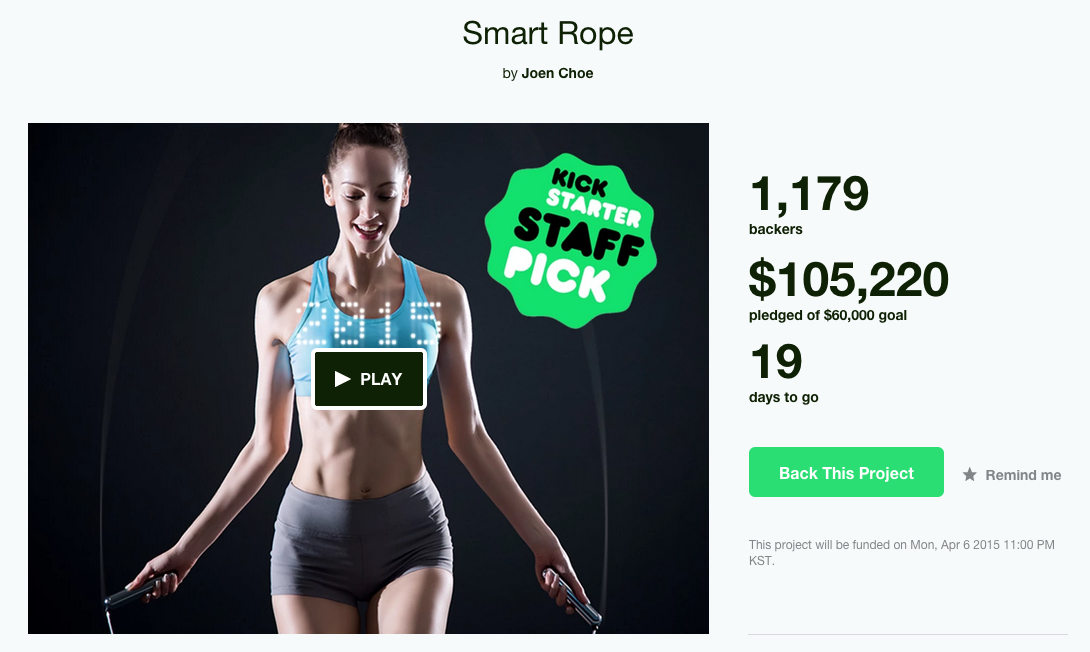 스마트(Smart)라는 단어가 들어갈 수 있는 영역은 끝이 없는 것 같습니다. 킥스타터(KickStarter)에 등록되어 목표 펀딩 금액이었던 6만달러를 가볍게 넘긴 스마트 로프(Smart Rope)가 바로 그 주인공입니다.