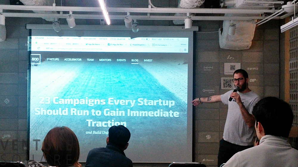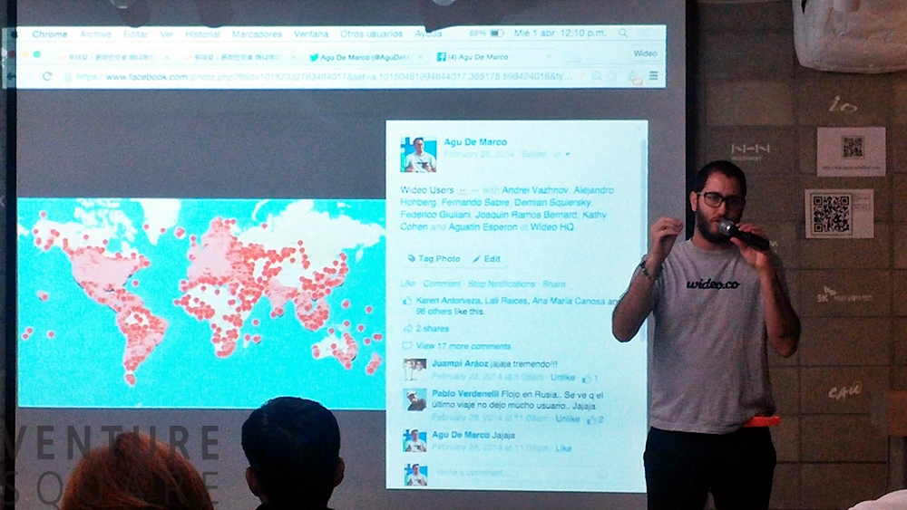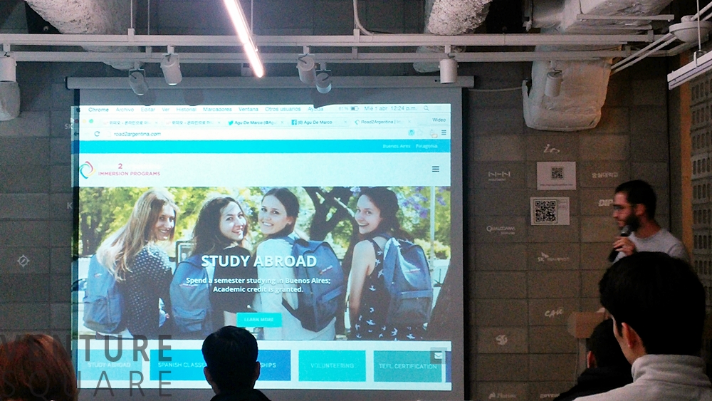 아르헨티나의 부에노스아이레스 대학에서 산업엔지니어링을 전공하면서 8년 간 기업가 정신을 배우다 보니 자연스럽게 기업가가 되었다는 위데오의 CEO 아구 드 마르코(Agu De Marco)는 자신의 닉네임을 ‘아구’라 소개하며 오늘 그를 찾아온 사람들 중 창업가, 예비창업가의 비중을 파악하는 것으로 이야기를 시작했습니다. 아구는 지금까지 다섯번의 창업을 해서 세번은 실패하고 하나는 진행 중이며 하나는 아직 알 수 없다고 했습니다. 앞으로 어떻게 될지는 잘 모르겠지만 지금의 여정을 즐기는 중이라고합니다.