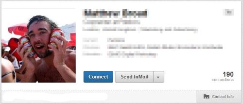 해변가에서 수영복 차림, 와이너리에서 와인잔을 들고 있는 사진, 등산을 가서 등산복 차림으로 찍은 사진, Google이나 Facebook 앞에서 하이파이브 하는 사진, 아이를 안고 있는 사진 , 심지어 여자 친구인 듯 보이는 사람을 안고 있는 사진 등 본인의 스타트업과 다소 무관한 사진들을 LinkedIn의 Profile 사진으로 올리는 경우를 흔히 보았다. 아래 예는 개인 privacy를 위하여 비슷한 예를 선별하여 인용하였다.