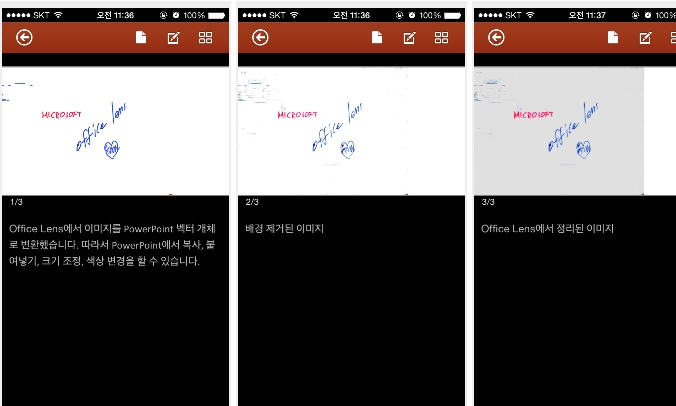 지금 쓰고 있는 스캐너 어플리케이션이 왠지 좀 마음에 들지 않았다면 마이크로소프트가 내놓은 오피스 렌즈(Office Lens)를 한번 써보시기 바랍니다. 애플용은 앱 스토어에서 다운로드가 가능하며 안드로이드 기기용은 아직 프리뷰 단계라 커뮤니티를 통해 참여 신청을 하실 수 있습니다.