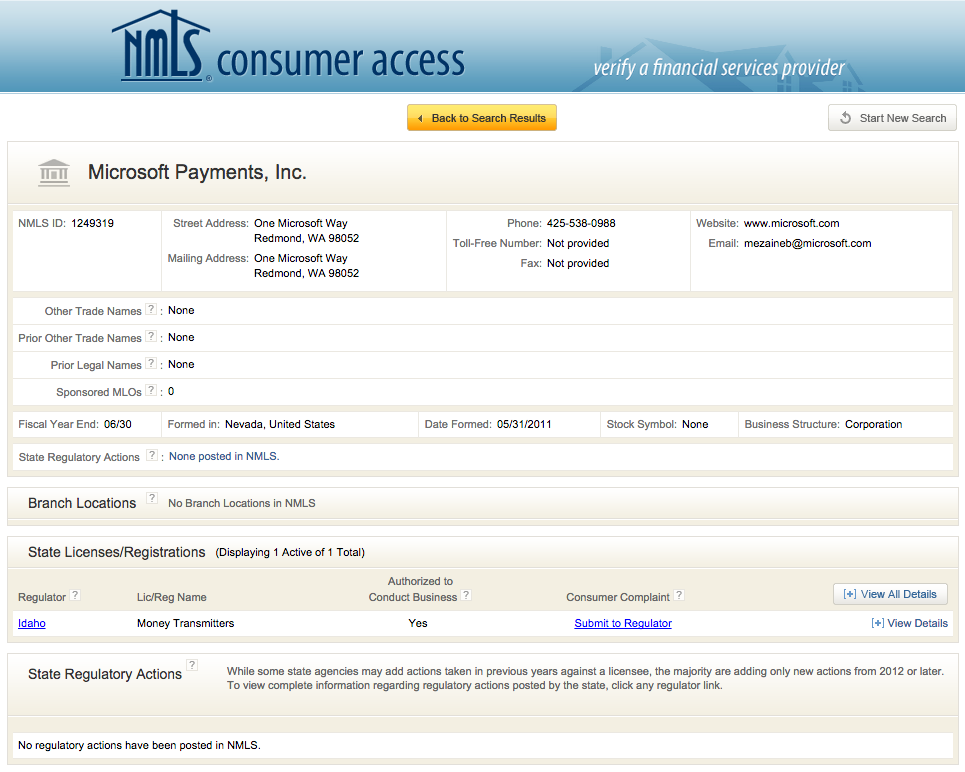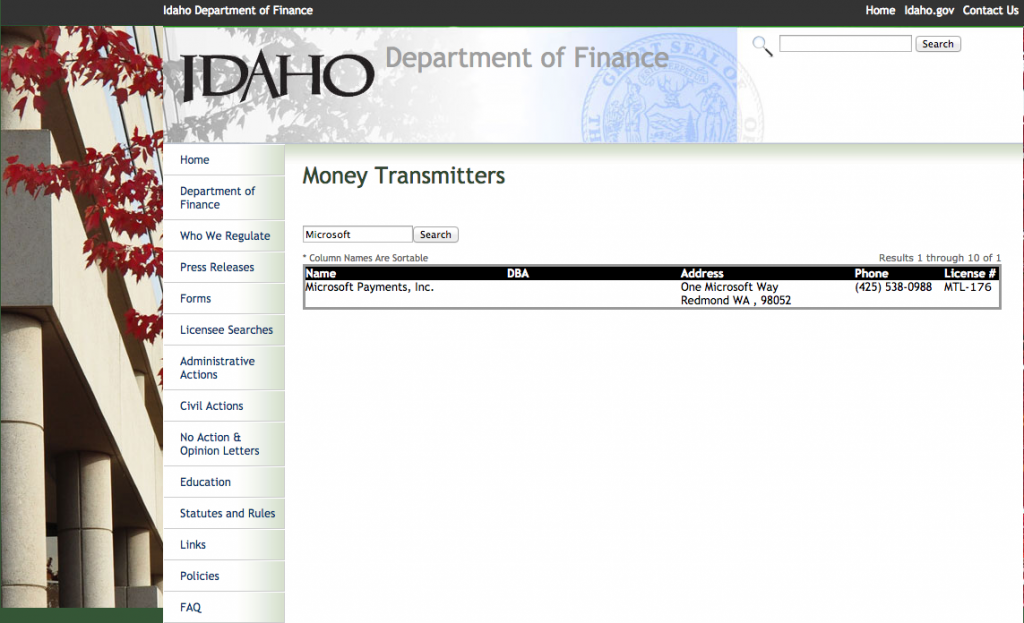 최근 거대한 몸집 답지 않게 발빠른 움직임을 보이고 있는 마이크로소프트답게 미국 전체 주(State)를 대상으로 송금과 관련된 라이센스 취득을 진행중이라는 소식이 전해졌습니다. 마이크로소프트는 전제결제 내지는 송금 관련한 사업을 위해 별도의 법인을 설립한 것으로 보이며 마이크로소프트 페이먼트 사(Microsoft Payment Inc)가 그 이름으로 결정된 것 같습니다.