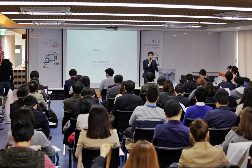스타트업 전문 미디어 벤처스퀘어와 데이터 시각화 전문기업 뉴스젤리가 공동으로 주최하는 오픈업 행사 ‘데이터 비주얼라이제이션의 무한변주(이하 무한변주)’가 4월 7일 디캠프 다목적 홀에서 개최되었다. 무한변주 행사는 데이터 시각화에 관련된 다양한 이야기와 사례들을 소개하는 행사로서 100여 명의 참석자와 함께 성황리에 진행되었다. 이번 오픈업 행사는 벤처스퀘어가 진행하는 17번째 오픈업 행사다.