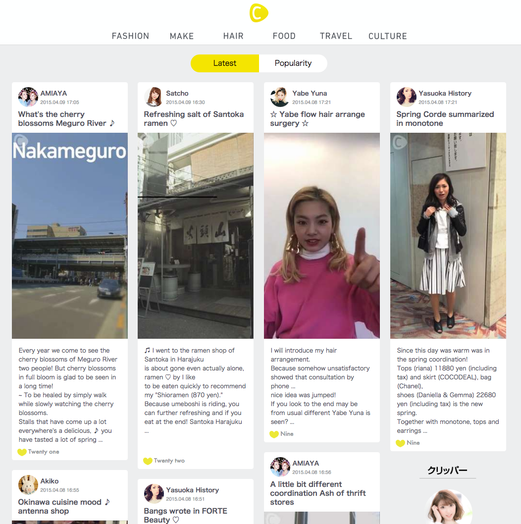 라인을 떠나고 나서 공격적으로 그가 펼치고 있는 C 채널 서비스는 언뜻 보면 요즘 흔히 볼 수 있는 큐레이션 서비스의 느낌이 강하지만 1분 이내의 동영상을 중심으로 클리퍼(Clipper)라는 전문 필진들이 패션과 화장, 헤어스타일과 음식, 여행 등 여성들의 관심사에 대해 리포트 형태의 소개, 리뷰를 하는 서비스이기도 합니다.