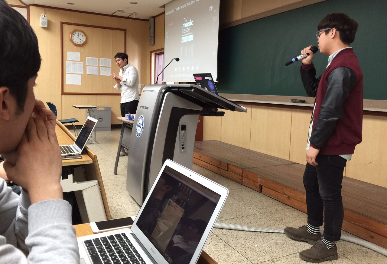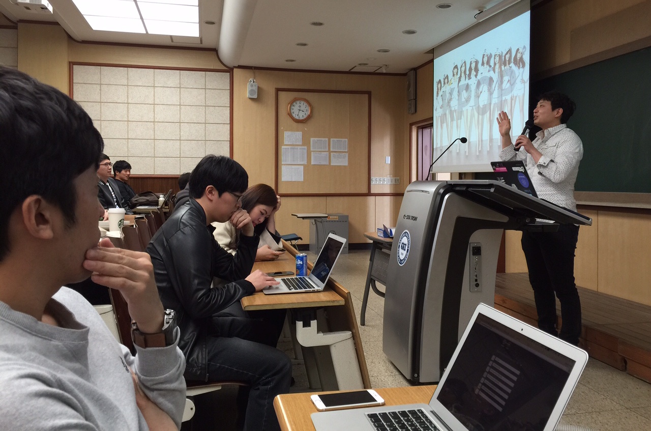 창업지원기관 디캠프 센터장으로 일하기 시작한지 오늘로 100일. 그동안 많은 창업자들을 만났고, 많은 투자자, 앤젤을 만났다. 많이 배웠다. 어제는 한양대에서 JJS미디어 이재석 대표의 강연을 들었다. ‘마이 뮤직 테이스트(My Music Taste)’란 서비스로 세계를 누비며 K팝 공연을 펼치는 사나이. ‘메이플스토리’ 개발자에서 ‘K팝 전도사’로 변신한 이재석. 그의 강연은 한 편의 공연이었다. 학생들이 강단에 올라 노래를 부르기도 했고 웃음과 박수가 끊이질 않았다. 이 대표 수업의 단면을 소개한다.