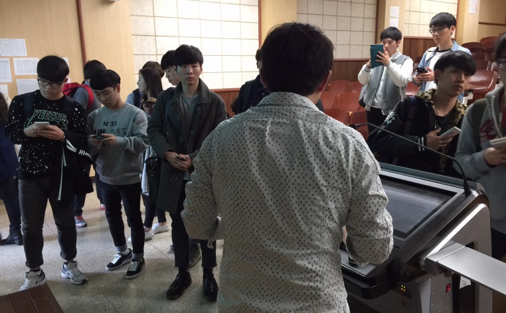 티켓을 준다는 말에 학생들 술렁술렁. 07학번(헐! 몇 학년?) 남학생이 맨먼저 나와 오아시스의 ‘Don’t Look Back in Anger’를 불렀다. 박수와 환호. 이 학생은 마룬5 서울 공연 티켓 2장을 받아가며 좋아했다. 이어 “충남 서산에서 온 OOO” 학생이 빈지노 노래를 불러 마룬5 서울 공연 티켓 2장을 받아갔고… 전부 네 명의 학생이 노래를 불렀다.