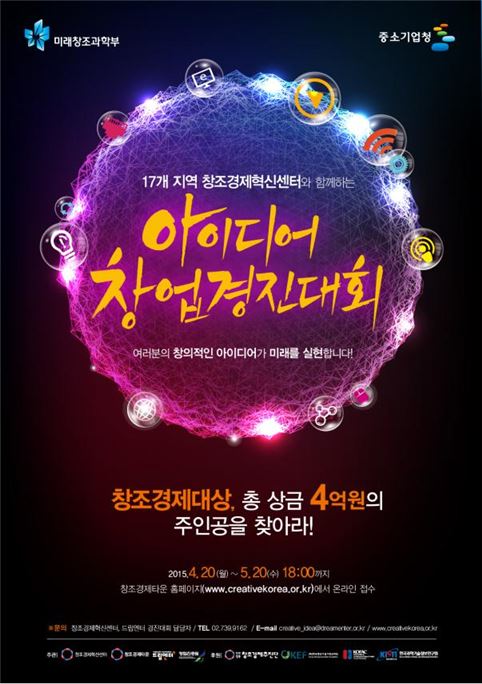 각 지역의 창조경제혁신센터가 힘을 모아 지역의 창의적인 아이디어 발굴과 함께 혁신센터 인프라를 활용한다. 미래창조과학부와 중소기업청은 창업과 성장을 집중 지원하기 위해 지역 창조경제혁신센터 중심의 지역대회를 통한 전국단위 창업 공모전 ‘2015 창조경제대상 : 아이디어·창업 경진대회’를 공동으로 개최한다.