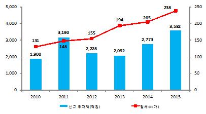 * 연도별 투자액(억원) : (‘11)12,608→(‘12)12,333→(‘13)13,845→(‘14)16,393