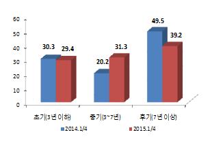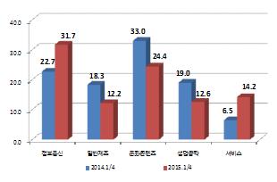 * 전문서비스 투자규모 및 비중 : (‘14.1/4)18억원(0.7%)→(‘15.1/4)144억원(4.0%)