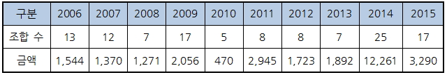 * 연도별 결성액(억원) : (‘11)22,865→(‘12)7,727→(‘13)17,652→(‘14)25,382