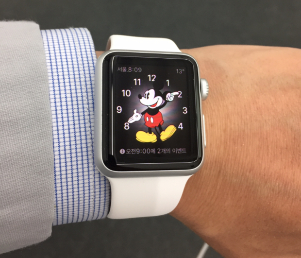 그런 내게 실제로 본 애플워치는 적당히 작고 무엇보다 자연스러워 보였다. 첨단기기라기보다는 자연스럽게 시계처럼 보인다는 뜻이다. 차고 있어도 무게나 두께에서 부담이 없다.