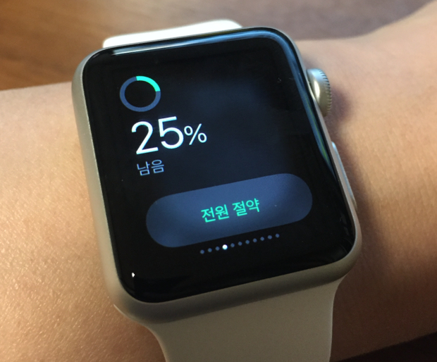 많은 분들이 우려하시는 배터리용량도 별 문제가 없었다. 스마트폰처럼 매일 한번씩 충전하겠다는 각오만 되어 있으면 된다. 아니 사실은 스마트폰보다는 휠씬 배터리가 오래 간다. 나는 매일 아침 6~7시에 애플워치를 착용하고 밤 11시~12시에 취침하기 전에 충전을 했는데 항상 40%정도 남아 있었다. 이 리뷰를 작성하는 오늘은 여러가지로 테스트를 많이 해서 그런지 밤 12시에 20%가 남아 있다. 어쨌든 하루를 보내면서 배터리가 떨어질 걱정을 할 필요는 없다. 다만 자기전에 꼭 시계를 벗고 충전을 해주는 습관을 익혀야 한다. 내 경우 그다지 어려운 일은 아니다.