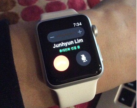자주 거는 12명의 전화번호를 애플워치에 입력해두고 가볍게 걸수 있다. 일단 애플워치로 걸거나 받은 다음에 아이폰을 집어들면 바로 통화가 폰으로 전환된다. 집에서 폰을 놔두고 돌아다니다가도 시계로 전화를 받을 수 있다는 점은 신기하다. 블루투스로 아이폰과 연결이 되지 않는 거리에 있어도 같은 wifi내에 있으면 역시 전화를 받을 수가 있다.