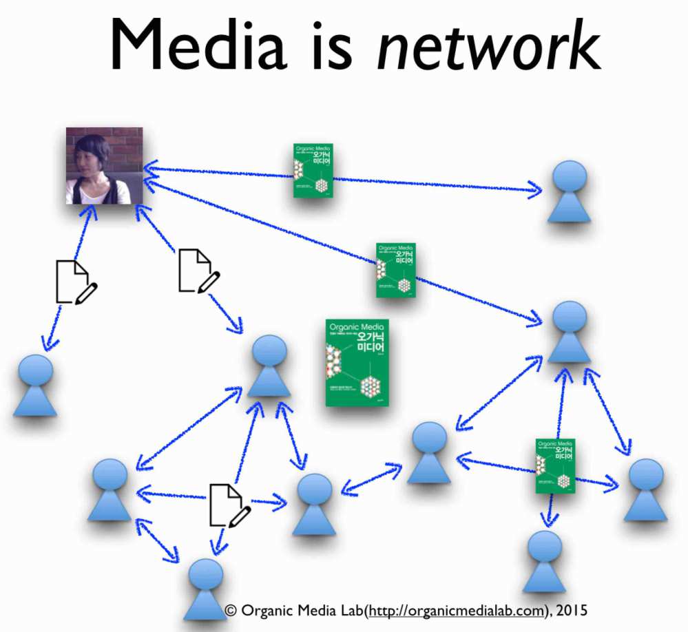 매스미디어는 신문, TV, 라디오를 말하는 것이 아니라 대중이라는 사회관계를 만드는 미디어를 말한다. 매스미디어가 사라진다는 말은 인터넷이 TV를 대체한다는 말이 아니다. 대중(동시에 같은 메시지를 받고 직접 상호작용하지 못하는 수용적 그룹)이라는 사회관계가 사라진다는 뜻이다. 불특정 다수라는 그룹은 변화무쌍한 네트워크로 대체될 것이다.[윤지영, 오가닉 미디어,21세기북스, 2014, 10쪽.]