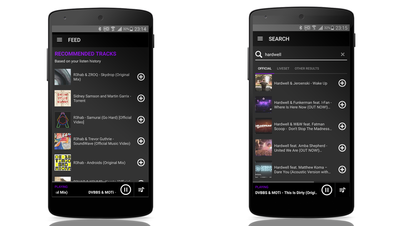 트랙 검색, 드랍만 듣기, 라이브셋을 구성하는 트랙리스트 보여주기 등 EDM 스트리밍 서비스를 제공하는 드랍비트가 안드로이드 어플리케이션을 출시했다.