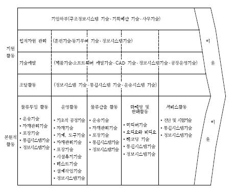 즉, 기술은 본원적 가치창출은 기술과 서로 상호작용을 하고 있다. 뿐만 아니라 지원적 활동에서도 다양한 기술이 적용되고 있는데 정보시스템 기술은 가치사슬 전반에 걸쳐 가치창출 활동을 조정하고 최적화하고 있다.